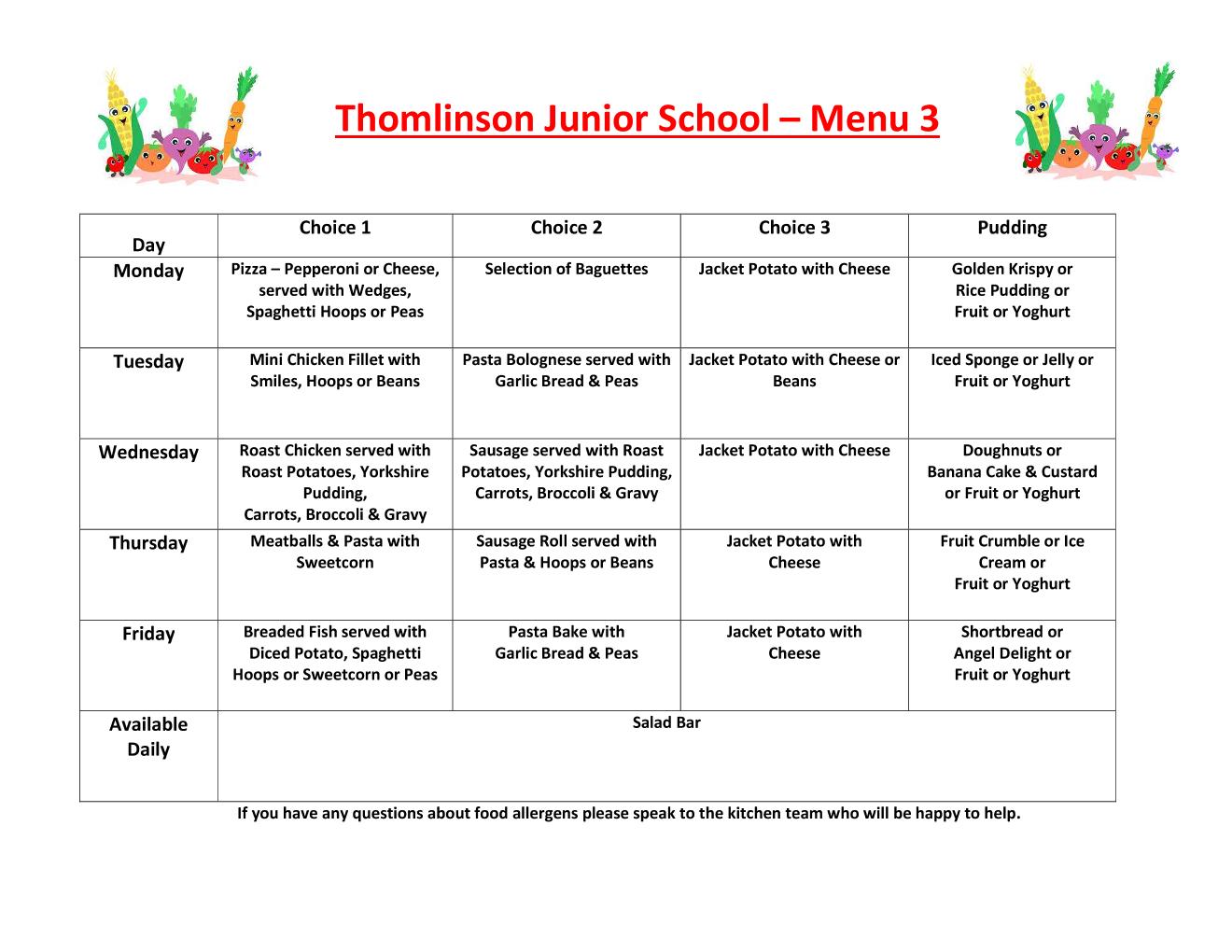 The menus rotate on a three-weekly basis. To view some sample menus, use the links below: